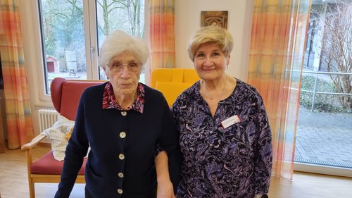 Gudrun Wolter, Einrichtungsleiterin des Caritas-Altenzentrums St. Martha, und Monika Watzke, Pflegedienstleitung in der Tagespflege der CDM, erklären das Prinzip einer Tagespflegeeinrichtung. Die Gäste werden morgens von den Angehörigen oder gegen eine geringe Selbstbeteiligung von einem Fahrdienst der Malteser gebracht. Nach einem gemeinsamen Frühstück gibt es ein abwechslungsreiches Programm. Dazu gehören Gedächtnistraining, gemeinsames Zeitungslesen, Erzählrunden, Gymnastik und Bastelrunden. „Unsere Gäste basteln gern, denn die Mitarbeiterinnen haben immer schöne Ideen“, erzählt Monika Watzke. Sie seien mit viel Herzblut dabei und würden auch in ihrer Freizeit an der Dekoration für den Raum basteln oder sich neue Bastelprojekte ausdenken. An manchen Tagen kommen auch ehrenamtlich Mitarbeitende zu Besuch und machen zum Beispiel Musik mit den Tagesgästen. Nach dem Mittagessen wird ein bisschen in den gemütlichen Sesseln ausgeruht oder ein Nickerchen gehalten, bevor am Nachmittag wieder Programm ist. Den Tagesgästen gefällt es meist so gut, dass sie es schade finden, wenn sie am Nachmittag wieder abgeholt werden.
