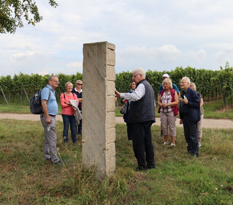 Zwölf Stationen umfasst der Biblische Weinpfad. An jeder Station informiert eine Stele über einen anderen Aspekt des Weines in der Bibel. Zwölfmal innehalten, zwölfmal den spannenden und informativen Ausführungen von Pfr. Babelotzky lauschen. Aber keine Sorge: die leeren Weingläser wurden nicht ganz so oft gefüllt.