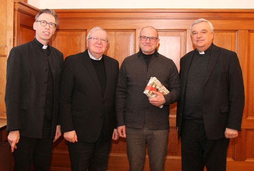 „Aufhören ist eine Stärke, nicht eine Schwäche“, zitierte Weihbischof Georgens in seinem Dankeswort die Lyrikerin Ingeborg Bachmann. Das Aufhören sei zugleich ein „Hören auf das andere meiner selbst, auf die anderen Möglichkeiten, die in mir liegen“. Viele seien nicht in der Lage aufzuhören, weil sie nicht hören könnten. In diesem Sinn sei das Aufhören eine Kunst, „ganz Ohr zu werden und sich auf etwas Neues einzulassen“. Weihbischof Georgens würdigte Mario Colletto als einen leidenschaftlichen Gestalter. „Der Impuls, etwas gestalten zu wollen, hat sie immer bewegt.“ Davon geben vor allem der Kaisersaal im Dom sowie der große Chorsaal im Haus der Kirchenmusik Zeugnis, so Georgens. „Diese Räume tragen Ihre Handschrift. Das wird bleiben, auch wenn Sie Speyer verlassen haben.“ Zum Zeichen des Dankes überreichte Domkustos Peter Schappert dem scheidenden Dombaumeister ein Buchpräsent. Er wies anerkennend auf die große Spannbreite im Wirken von Mario Colletto hin.