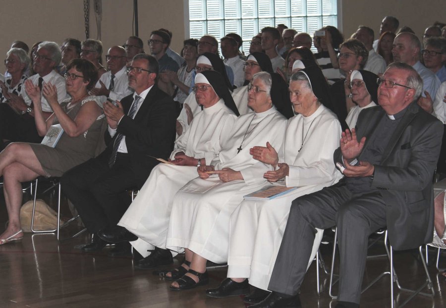 Schulleiter Josef Lösch freute sich sehr über die vielen Anwesenden, welche die Schulaula füllten. Er verwies auf die frühen Wurzeln als „höhere Töchterschule und Internat“, und darauf, dass der Neubau vor 60 Jahren Maßstäbe setzte. Lösch lobte das Engagement und die Verbundenheit des Kollegiums mit der Schule und hob den hohen Anspruch hervor, das Erbe der Ordensschwestern weiterzuführen und das Leitbild mit Leben zu füllen – und all das in einer immer stärker säkularisierten Welt.
