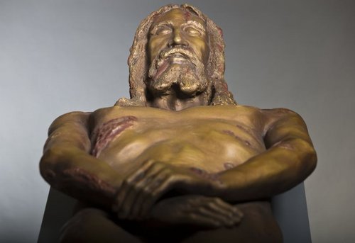 Neben einer originalgetreuen Kopie des Turnier Grabtuchs wird ein Korpus gezeigt, der nach einer 3D-Betrachtung der Tuchabdrücke gefertigt wurde.