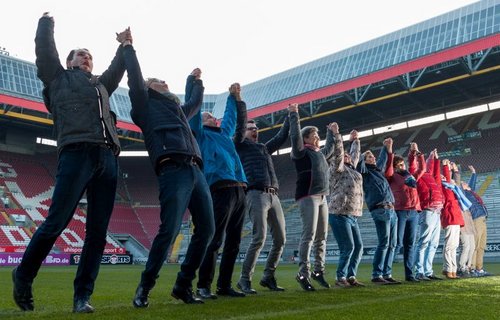 Neun ehrenamtliche Gottesdienstleiter und -leiterinnen des Bistums ließen sich von der Stadion-Stimmung auf dem Betzenberg inspirieren.