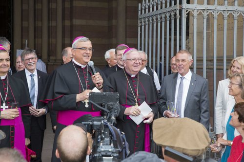 "Es war für uns alle überwältigend", sagte Bischof Dr. Karl-Heinz Wiesemann am Ende des zweitägigen Jubiläumsfests zu 200 Jahren Neugründung des Bistums Speyer. Die Gäste waren zu Tausenden nach Speyer geströmt und ließen sich von dem breit gefächerten Angebot begeistern. "Es war ein grandioses Fest, bei dem alles gestimmt hat", zog Generalvikar Dr. Franz Jung Bilanz. Ein Teilnehmer formulierte es so: "Alles, was ihr in diesen Tagen auf die Beine gestellt habt, war ein echter Volltreffer!“