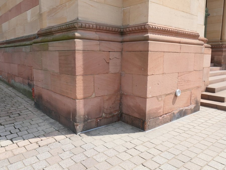 Speyer. Der Sockelbereich rund um den Dom weist derzeit einen sanierungsbedürftigen Zustand auf. In den vergangenen Jahren wurden lediglich Teilabschnitte im Rahmen anderer Bauprojekte überarbeitet. Da in diesem Bereich seit längerer Zeit keine flächendeckenden Maßnahmen durchgeführt wurden, zeigen die Sockelflächen deutliche Gebrauchsspuren und sind teilweise durch Bewuchs beeinträchtigt. Zudem haben fehlende Fugen bereits zu kleineren Schäden geführt.