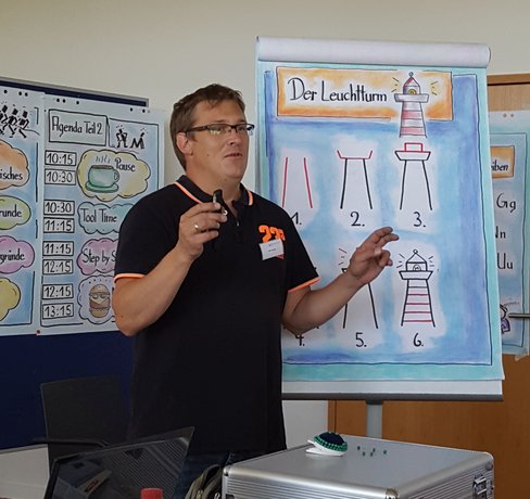 Christian Fedder gab einen Einblick in die Einsatz- und Gestaltungsmöglichkeiten mit dem Präsentationsmedium Flipchart.