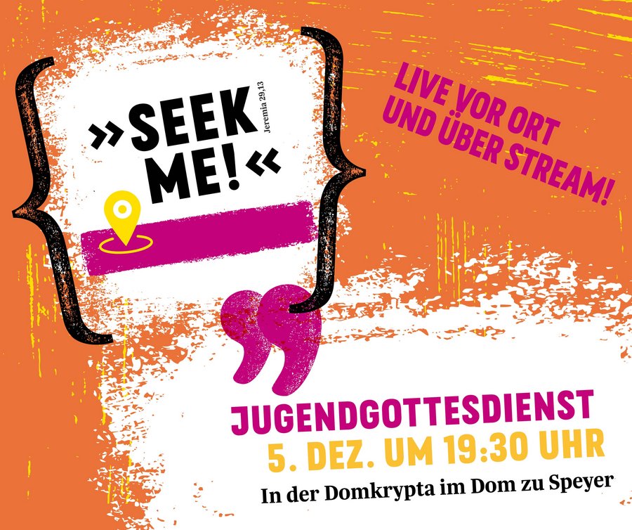 Laut Kaplan Matthias Schmitt, dem Leiter der Berufungspastoral Speyer, ist „Seekme!“ („Such mich!“) eine neue Art von Gottesdienst für junge Menschen. „Jugendliche sind auf der Suche nach ihrem Platz im Leben und vielleicht auch auf der Suche, was Gott mit ihrem Leben vorhat. ‚Seekme!‘ möchte bei dieser Suche helfen“, so beschreibt Schmitt den Gottesdienst. Einen besonderen Akzent wird auf den modernen Lobpreis an diesem Abend gelegt, einem Musik- und Gebetsstil, der immer mehr Zuspruch von Christen aus allen Konfessionen findet. Die musikalische Gestaltung übernimmt an diesem Abend die geistliche Gemeinschaft Chara. Die Domkrypta wird in ein Lichtermeer getaucht werden, um den ältesten Teil des Domes besonders hervorzuheben. Predigen wird Sandra Petrollo-Shahtout, Referentin in der Berufungspastoral Speyer.