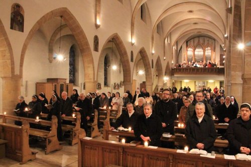In seiner Ansprache wies Otto Georgens auf die Erfahrung eines Stromausfalles hin: „Es ist sehr unangenehm, dauerhaft im Dunkeln zu sitzen.“ Die festliche Atmosphäre des Kerzenscheins hingegen „erhebt uns und lässt unsere Herzen höher schlagen“. Da lasse sich nachvollziehen, warum das Evangelium des Tages von Jesus Christus als dem „Licht der Welt“ spreche. „Dieses Licht vermag ganz andere Dunkelheiten im Leben zu vertreiben, als sie ein Stromausfall verursachen kann. Weihbischof Georgens ermutigte die Ordensangehörigen, aus Dankbarkeit für ihre Berufung zum Ordensleben selbst Träger dieses Lichtes zu werden. „Denn unsere Kirche, unsere Gesellschaft, unser Land brauchen Hilfe, und zwar vor allem geistliche Hilfe. Denn wo der Horizont Gottes im Blick bleibt, rücken alle anderen Dinge und Fragen an den richtigen Ort.“