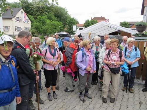 Die Wallfahrer wurden mit ihrem Pfarrer Andreas Rubel schon früh in Sonderbach erwartet. Dort begrüßte man die Wanderschar und der Sonderbacher Ortsvorsteher überreichte der Truppe ein Erinnerungsgeschenk.