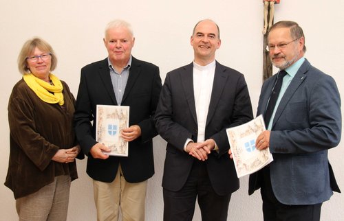 Amtsübergabe (von links): Sybille Jatzko, Franz Leidecker, Generalvikar Dr. Franz Jung und der neue Missbrauchsbeauftragte Ansgar Schreiner.