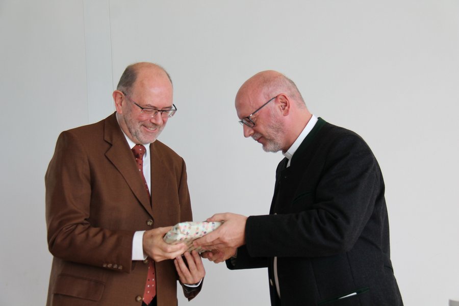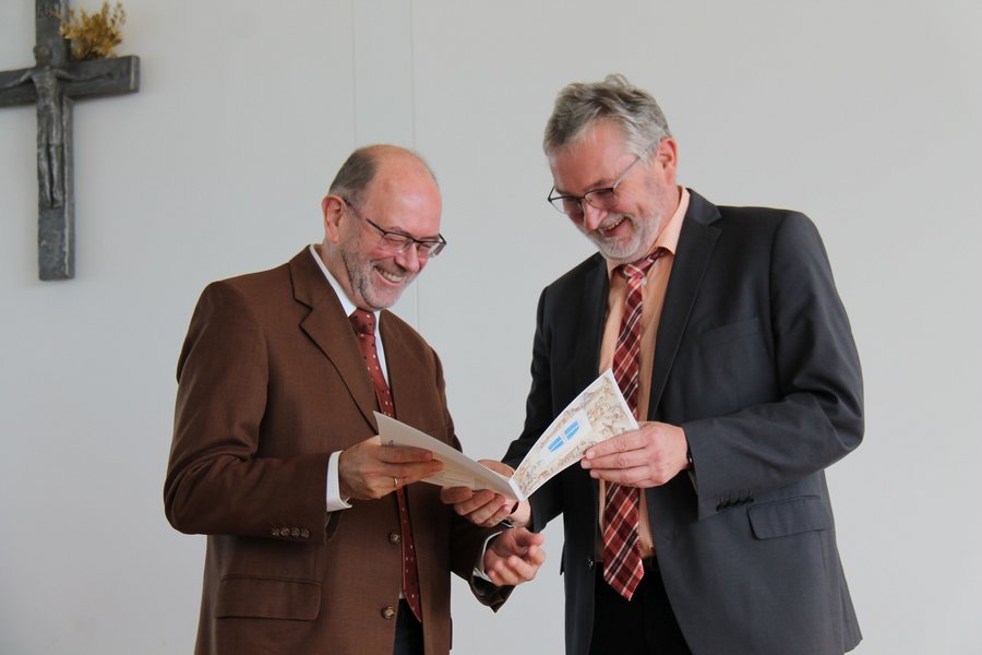 Kanzleidirektor Wolfgang Jochim (rechts) überreichte Dr. Christian Huber die Dankurkunde des Bischofs.