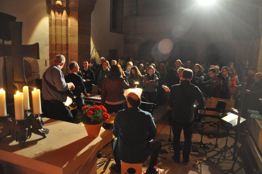 Bad Dürkheim. Die Musikwerkstatt "Neues Geistliches Lied" des Bundes der Deutschen Katholischen Jugend (BDKJ) Speyer feierte am vergangenen Wochenenden ihr 25-jähriges Bestehen. Vom 20. bis 22.1.17 trafen sich rund 100 Sänger im Jugendhaus St. Christophorus in Bad Dürkheim. Thomas Quast, Komponist und Musiker der Band Ruhama, war im Jubiläumsjahr Referent der Musikwerkstatt, deren Schwerpunkt das Singen im großen Chor war. Sein Fazit: „Ich fand das Hautnah-Konzert am Freitag besonderes und sehr beeindruckend. Meine Bandkollegen und ich waren da wirklich nah am Publikum dran. Das war eine ganz besondere Atmosphäre“. Der Kölner Komponist hat es genossen, mit der Band und den Werkstatt-Teilnehmenden gemeinsam seine Lieder zu singen: „Alle Lieder- auch neue oder unbekannte- wurden mitgesungen“, freute er sich. Das Neue Geistliche Lied (NGL) zeichnet sich durch religiöse Texte, Einflüsse aus der Popularmusik und die Verwendung im Gottesdienst aus.