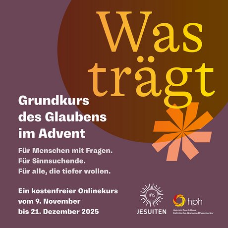 Ludwigshafen. Der Advent ist eine Zeit voller Sehnsucht, aber auch voller Fragen: Was gibt meinem Leben Halt? Was trägt mich wirklich – im Alltag, im Zweifel, im Innersten? Mit dem Online-Grundkurs „Was trägt“ laden die Jesuiten und das Heinrich-Pesch-Haus ab dem 9. November 2025 Menschen ein, sich auf einen geistlichen Weg einzulassen.