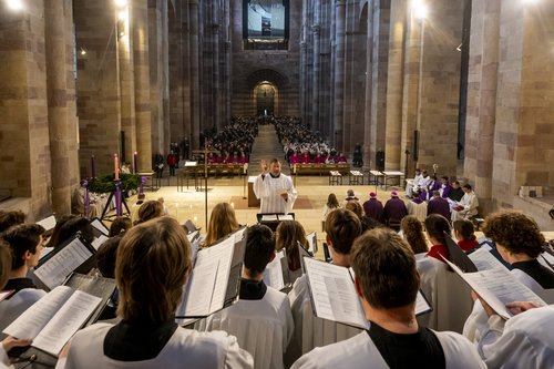 Im Anschluss an die Pontifikalvesper richtete Bischof Dr. Karl-Heinz Wiesemann seine persönlichen Dankesworte an den emeritierten Weihbischof: „Die große Zahl von Gästen zeigt, wie tief verwurzelt du bist, in unserem Bistum, in der ganzen Pfalz und darüber hinaus – und wie sehr Dich die Menschen schätzen.“