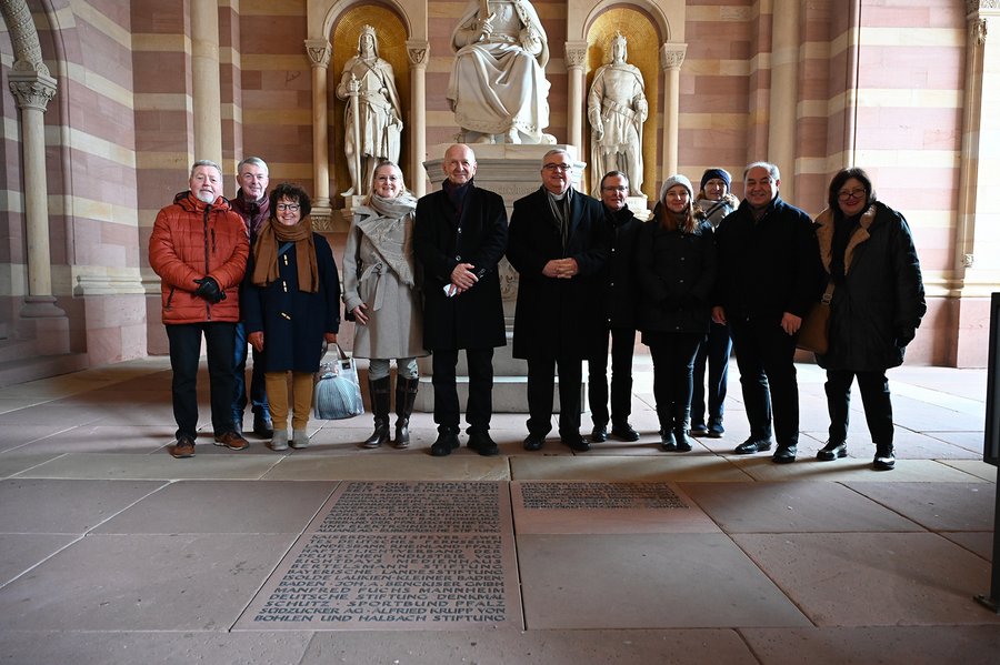 Der Vorsitzende des Dombauvereins Speyer Dr. Gottfried Jung, Bischof Dr. Karl-Heinz Wiesemann und Domdekan Dr. Christoph Kohl (v.l.n.r.) in der Vorhalle des Doms © Bistum Speyer