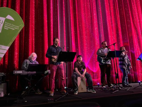 Herr Kaltenegger, Betreiber des Lux-Kinos Frankenthal, hob die Besonderheit des Formats hervor: „Wir hatten hier schon viele Events, aber dass ein Gottesdienst Teil einer Kinoveranstaltung ist, war für uns eine Premiere.“ Eine weitere Premiere war die Live-Band, die vor dem Kino-Vorhang begleitend zum spirituellen Impuls Musik machte. „Das Format hat Kino und Glauben auf eine coole Art verbunden. Wir hatten beim Impuls Zeit, um über das nachzudenken, was für mich im Leben wirklich zählt und der Film hat danach nochmal gezeigt, wie die Realität dann oft darauf einwirkt,“ erzählt Louisa, die ihren Freiwilligendienst im Referat leistet.