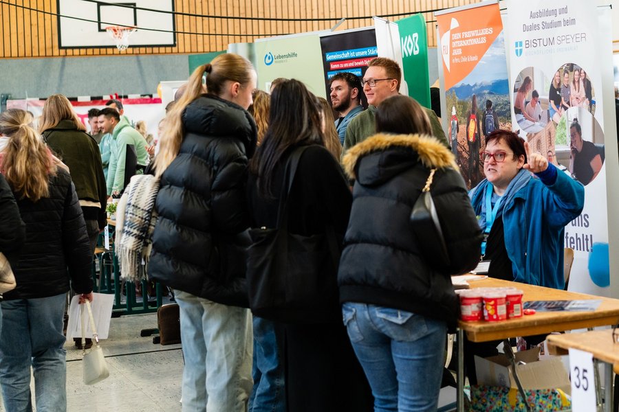 In der neuen Turnhalle präsentierten sich rund 50 regionale und überregionale Unternehmen aus unterschiedlichsten Berufsfeldern. In persönlichen Gesprächen erhielten die Schülerinnen die Möglichkeit, direkt mit Firmenvertreterinnen und -Vertretern in Kontakt zu treten, Unternehmen kennenzulernen und sich umfassend über Ausbildungs- und Studienmöglichkeiten zu informieren. Ziel der Messe war es, erste berufliche Kontakte zu knüpfen und Orientierung für den eigenen beruflichen Weg zu bieten.