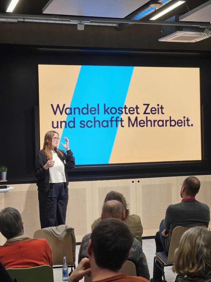 Tagungsort war das 42 in der Innenstadt, ein modernes Innovationslabor in einem ehemaligen Kaufhaus. Der Ort selbst erzählte schon eine Geschichte: Früher diente das Gebäude einem ganz anderen Zweck, heute ist es ein Raum für Neues. Genau darüber wurde den ganzen Tag gesprochen – wie Orte, Formen und Gewohnheiten sich verändern können und trotzdem wichtig bleiben.