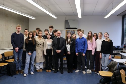 Schülerinnen und Schüler des Grundkurses Katholische Religion der 11. Klasse am Reichswaldgymnasium Ramstein-Miesenbach zusammen mit Generalvikar Markus Magin © Julian Rothhaar