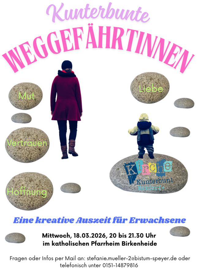 Fragen oder Infos per Mail an: stefanie.mueller-2@bistum-speyer.de oder telefonisch unter 0151-14879816