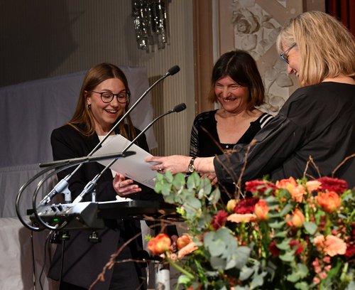 v.l.n.r.: Preisträgerin Soraya Böhm, Schulseelsorgerin Simone Reuter und Schulleiterin Jutta Brummer © Maria Ward Schule Landau