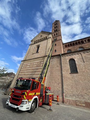 Speyer. Am Nachmittag des 3. und 4. Mai gibt es erstmals die Möglichkeit, an einer Führung zum Thema Brandschutz am Speyerer Dom teilzunehmen. Anlass ist der Gedenktag des Hl. Florian am 4. Mai. Dieser gilt als Schutzheiliger vor Feuersbrünsten. Der ehemalige Stadtfeuerwehrinspektor Michael Hopp, der nach seiner Pensionierung seine Tätigkeit als Domführer begann, nimmt die Besucher mit auf eine fachkundige Tour zum Thema Brandschutz am Dom. Bestandteile der Führung sind eine Besichtigung von außen, ein Gang durch den Dom, hinauf in den Kaisersaal und über den Südwestturm bis in den Dachraum. Dabei wird erklärt, welche vorbeugenden Schutzmaßnahmen am Dom ergriffen werden und wie die Feuerwehr im Ernstfall agiert. 180 Stufen müssen dabei zurückgelegt werden. Auf Grund der besonderen örtlichen Gegebenheiten liegt die maximale Teilnehmerzahl bei 15 Personen pro Gruppe. Das Mindestalter der Teilnehmer beträgt 12 Jahre. Festes Schuhwerk ist Voraussetzung für das Betreten der besonderen Bereiche.
