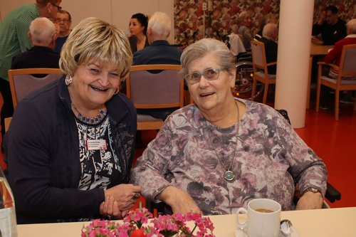 Es ist eine bunt gemischte Gruppe von Ehrenamtlichen, die heute da sind. Stefanie Kellerhals und Christoph Ganz stehen hinter dem Tresen der Cafeteria, nehmen Bestellungen entgegen, bringen Kuchen und Getränke zu den Tischen. „Ich bin schon seit über 14 Jahren ehrenamtlich tätig, seit ich in Rente bin“, sagt Stefanie Kellerhals. Doch die Arbeit wurde körperlich zu anstrengend. Nach einem Bericht in der Zeitung kam sie ins Caritas-Altenzentrum St. Elisabeth. „Ich habe an der Pforte angefangen“, erzählt sie. Dort ist sie jeden Donnerstag und jeden zweiten Sonntag. Dann hat sie zusätzlich den Dienst in der Cafeteria übernommen. „Das ist eine leichte Arbeit, ich muss nicht schwer heben, wir müssen nicht mal das Geschirr spülen und es macht unheimlich Spaß. Es wird viel gelacht und ich freue mich über die Herzlichkeit und Dankbarkeit hier“, sagt sie. Die Preise für die Besucher seien sehr human und die Bewohner bekommen den Tageskuchen und eine Tasse Kaffee umsonst.