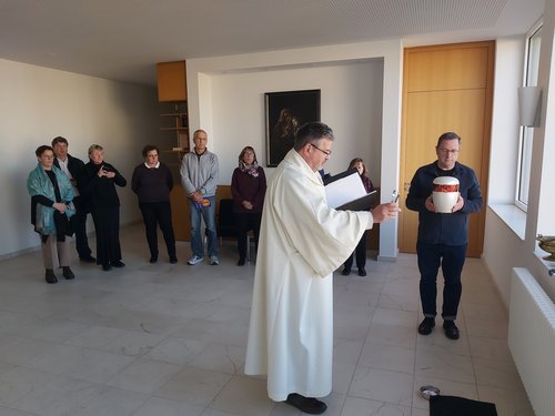 Am Abend steht dann der offizielle Abschluss im Seminar St. German an. Dazu sind auch Familienangehörige, Kursdozenten und Mitglieder der örtlichen Pastoralteams gekommen. Bevor alle zu einem festlichen Abendessen geladen sind, wird in der Seminarkirche Gottesdienst gefeiert. Marie-Christin Mayer, Clemens Schirmer, Kerstin Fleischer und Regens Franz Vogelgesang leiten die Wortgottesfeier, in der die neuen Begräbnisleiterinnen und -leiter selbst zu Wort kommen und in der sie feierlich und einzeln gesegnet werden. „Sei mutig und stark“, lautet die Zusage in der Bibellesung. „Dazu habt ihr Profil, Begabungen, Fähigkeiten und Kenntnisse erhalten, die ihr jetzt einbringen wollt“, wendet sich Kerstin Fleischer, die Leiterin der Hauptabteilung Seelsorge im Ordinariat, an die Ehrenamtlichen. „Ihr traut euch das zu und die anderen trauen euch diese Aufgabe zu!“ Und Marie-Christin Mayer spricht von „1 A Seelsorgerinnen und Seelsorgern, denn ihr habt in euren Abschlussübungen bewiesen, dass ihr ein Licht für trauernde Menschen seid“.