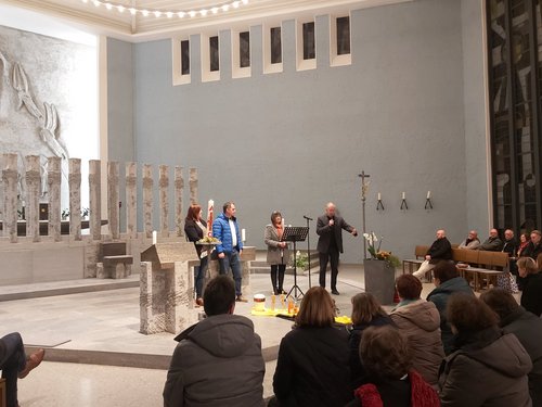 Die insgesamt 20 Frauen und Männer aus Pfalz und Saarpfalz haben sich seit November 2024 zu Leiterinnen und Leitern von Begräbnisfeiern ausbilden lassen. Ein Novum im Bistum Speyer: In ihren jeweiligen Pfarreien unterstützen die Freiwilligen künftig die hauptamtlichen Seelsorgerinnen und Seelsorger in der Trauerpastoral. „In einigen anderen Diözesen gibt es diesen ehrenamtlichen Dienst schon“, weiß Liturgiereferent Clemens Schirmer, der zusammen mit Maria-Christin Mayer (Referentin für Hospiz- und Trauerseelsorge) den Kurs leitete. „Das Besondere bei uns ist der Umfang der Ausbildung über ein Jahr hinweg.“