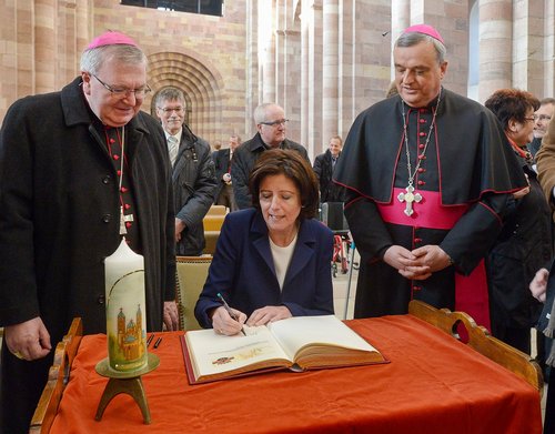 Ministerpräsidentin Malu Dreyer im Speyerer Dom im Jahr 2014 beim Eintrag in das goldene Buch © Bistum Speyer: